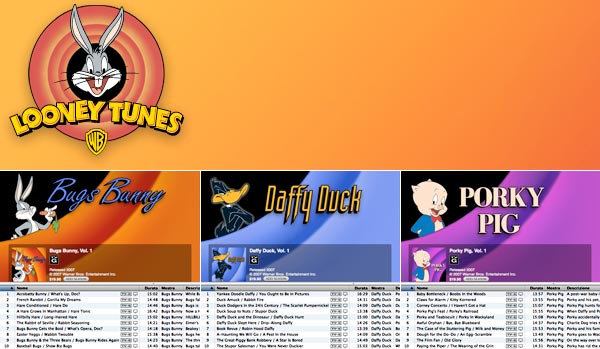 Da Warner Bros arrivano i tre più amati character di Looney Tunes: il coniglio "Bugs Bunny" che sgranocchia carote ha vinto anche un Oscar nel 1958 e sono stati prodotti ben 175 episodi, "Daffy Duck" è il papero sfortunato ma simpaticamente immortale e poi il maialino paffutello e balbuziente "Porky Pig". Ogni puntata da 2 dollari è composta da due episodi e per i tre personaggi sono attualmente disponibili 10 file.