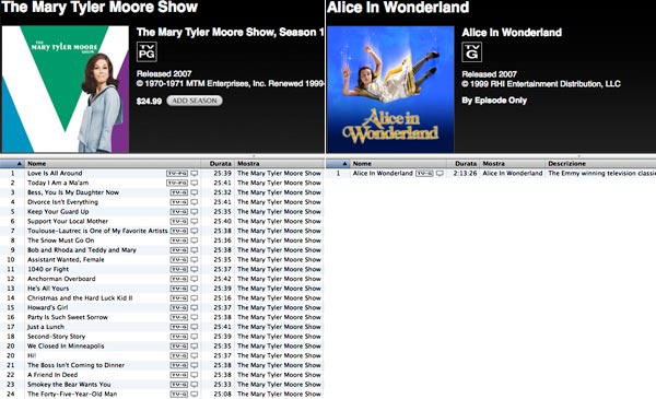 The Mary Tyler Moore show". Su iTunes Store USA sono approdate le prime 3 annate andate in onda a partire dal 1970, con 24 puntate ciascuna.
