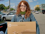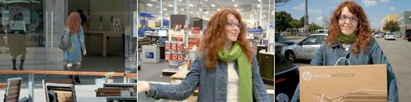 Una ragazza dai capelli rossi voleva un computer portatile con schermo da 17 pollici e pagarlo però con un budget limitato (1.000 dollari). Punta subito ad un Apple Store, ma se ne deve andare perché al massimo le davano un modello da 13 pollici. Bastava vedere online i prezzi ma la furbacchiona è salita sulla sua Volkswagen Beetle, ha contribuito al traffico ed ha inquinato per scoprire quello che avrebbe saputo online.