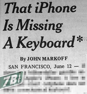 La scoperta del (c'è chi dice) migliore quotidiano del mondo è che l'iPhone non possiede una tastiera con i tasti "fisici" da premere ma "solo" una tastiera virtuale che funziona con lo sfioramento dello schermo con i polpastrelli delle dita.