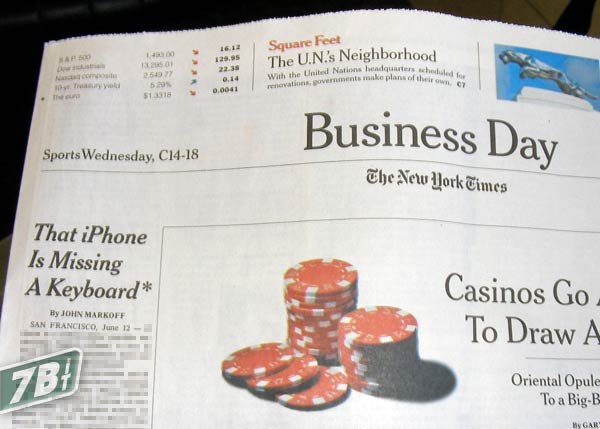 Si fa anche un confronto side-by-side a pagina 5 del giornale tra iPhone, Danger Sidekick 3, Samsung Upstage, BlackBerry Curve 8300 e Palm Treo 750. Tutti smartphone dotati di una variante della tastiera "fisica".