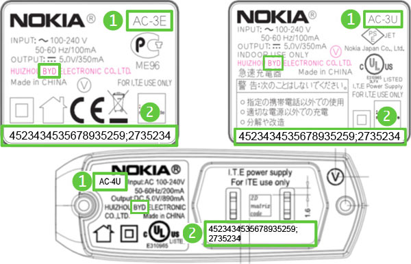 I trasformatori di tipo AC-3E, AC-3U ed AC-4U prodotti da Huizhou BYD Electronic quest'anno potrebbero risultare pericolosi, dopo l'apertura del guscio in plastica gli utenti potrebbero toccare parti elettriche esposte e subire uno shock se l'alimentatore è collegato alla corrente elettrica. Nokia li sostituisce gratuitamente.