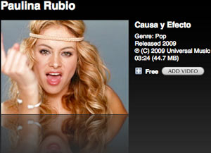 Nonostante la piena estate il negozio multimediale di Apple propone, nella sua massima espressione statunitense, il videoclip omaggio "Causa y efecto" di Paulina Rubio.