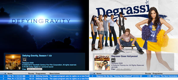 Tra gli spettacoli televisivi esordisce per ABC la produzione in alta definizione di Fox "Defying gravity", che racconta di un gruppo di otto astronauti della Antares in missione interplanetaria da sei anni. Tutte e due le prime puntate sono gratis.