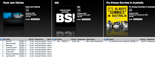 Infine un gruppo di video dedicati agli sport preferiti dai giovani (così pare): "Huck jam diaries" è il dietro alle quinte del mondo dello skateboard visto da Tony Hawk, "BS!" costa 5 dollari per 44 minuti di surf dalle spiagge più belle del mondo e "It's always sunnies in Australia", anch'esso da 5 dollari per 38 minuti, segue un team di skate che si esibisce nel continente dall'altra parte del pianeta.