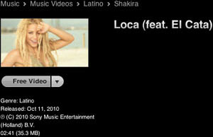 Trasferendoci su iTunes Store USA possiamo invece fare scorpacciata di diversi file gratis, iniziando con il videoclip “Loca” di Shakira (featuring El Cata).