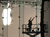 Le coperture in plastica adesiva che simulavano un sipario rosso sono state tolte dal 280esimo Apple Store.