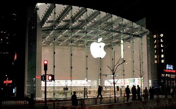 Nella notte Apple ha tolto le coperture dalla facciata in cristallo dell'ultimo rappresentante del minimalismo. Aggiornato.
