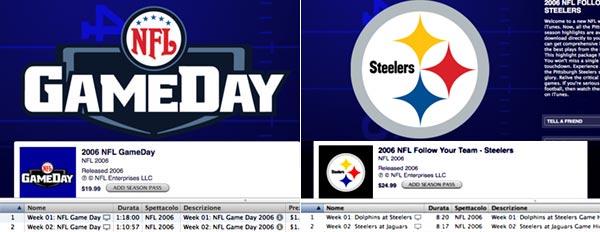 Il football americano apre la nuova stagione 2006/2007 e il canale via cavo dedicato al campionato NFL debutta su iTunes Store con una ricca offerta.
