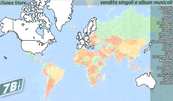 Nella mappa mondiale animata che vedete qui sopra è riassunto (in 1 minuto e 20 secondi) cosa vendono e cosa regalano gli iTunes Store, con indicazioni di dove questo si verifica realmente. Attendiamo evoluzioni e vi aggiorneremo tale mappa, se queste accadranno.