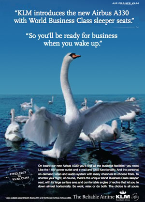 Nel cartello pubblicitario che si può vedere accanto, la compagnia di bandiera olandese KLM (del gruppo Air France-KLM), la più antica del mondo, sta ammodernando la flotta e, nello specifico, si fa riferimento a nuovi Airbus A330-200.