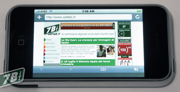 Dagli Stati Uniti ci arriva la prima foto dell'iPhone con setteB.IT letto dal browser Safari, nella versione per lo smartphone di Apple.