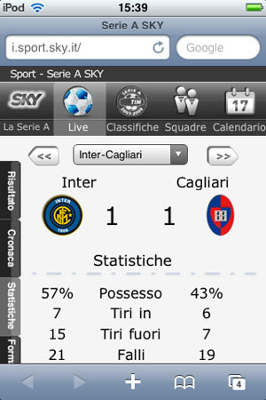 Grazie a Key4biz veniamo a sapere che il sito della televisione satellitare Sky Italia è stato adattato per la visione su iPhone/iPod touch.