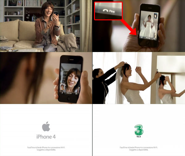 Apple ha iniziato a fare pubblicità in TV al nuovo iPhone 4, anche in Italia, focalizzandosi esclusivamente sulla funzione della videoconferenza FaceTime.