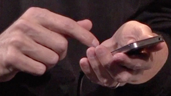 La più incredibile delle risposte a risoluzione del serio problema delle antenne nel nuovo smartphone. Il modo più naturale per tenere in mano un telefono va cambiato, secondo Jobs. Ma è lui il primo che lo tiene così.