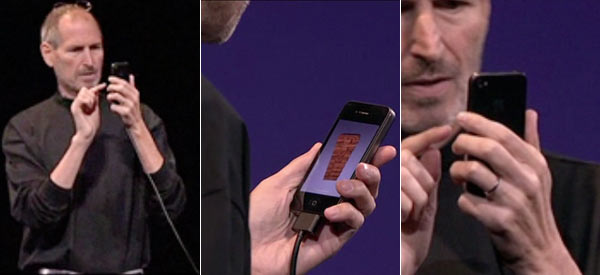 Steve Jobs, durante la presentazione di questo nuovo smartphone, al WWDC 2010 di poche settimane fa, ha tenuto in modo naturale in mano l’iPhone 4 e, secondo le sue indicazioni, lo ha fatto spesso nel modo che non si dovrebbe.