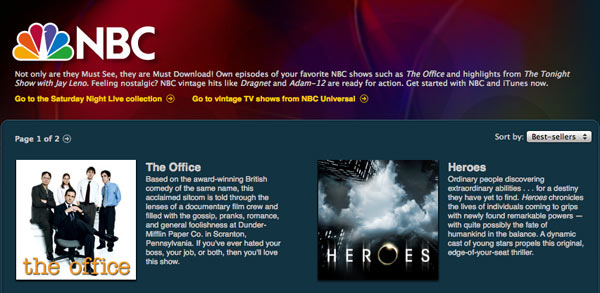 La versione statunitense del negozio multimediale di Apple vende dal 2006 svariate serie TV provenienti dai canali/studios del suo gruppo.