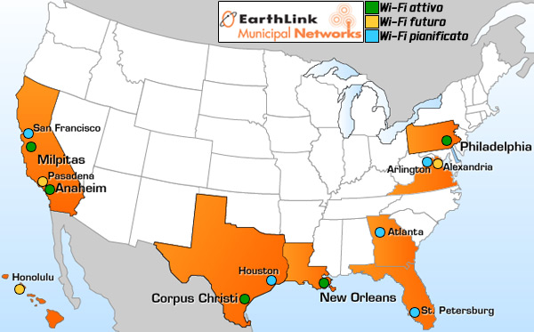 Aggiornamento del 01/06/2007: Earthlink annuncia di aver completato oggi la copertura della cittadina texana Corpus Christi.