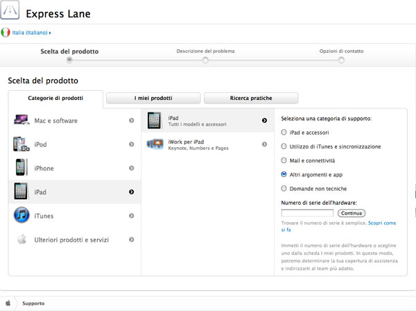 Già, ma fino a “ieri” il supporto tecnico sul sito di Apple “parlava” solo inglese e poteva non essere gradito da tutti. La novità è che Express Lane è ora disponibile nelle lingue principali, italiano compreso.