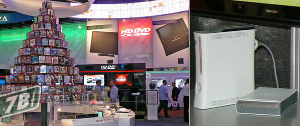 Toshiba, che ha venduto un totale di 730.000 tra lettori e regisratori in tutto il mondo (300.000 player HD DVD per la Microsoft Xbox 360, illustrato qui sotto), non annuncia per il momento la volontà di adottare Blu-ray.