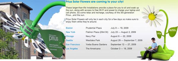 Per promozionare lo spirito ecologico della vettura di Toyota sono attualmente in giro per le principali città statunitensi un gruppo di margherite alte 5 metri, dotate di pannelli solari.