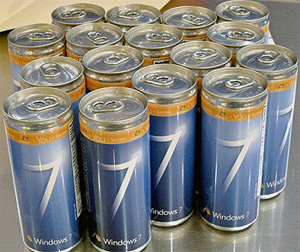 Microsoft propone come alternativa per i ragazzi con la gola secca l'energy drink "Windows 7", che vuole sfidare Red Bull nel settore a colpi di caffeina e taurina.
