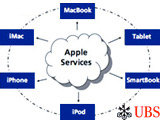 UBS prevede l'arrivo nei prossimi mesi di nuovi prodotti con al centro una serie di servizi coordinati che spingeranno i consumatori ad innamorarsi di nuovi oggetti made in Cupertino. Nel grafico sottostante UBS vede consolidarsi gli iMac, MacBook, iPhone ed iPod nel catalogo di Apple con l'aggiunta di due prodotti definiti SmartBook (una sorta di netbook con abbonamento 3G) e Tablet.