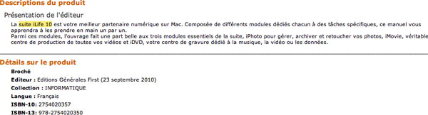 Amazon ha rapidamente eliminato il titolo e l’immagine della copertina su iLife ’10, ora si legge solo “titre à venir“.