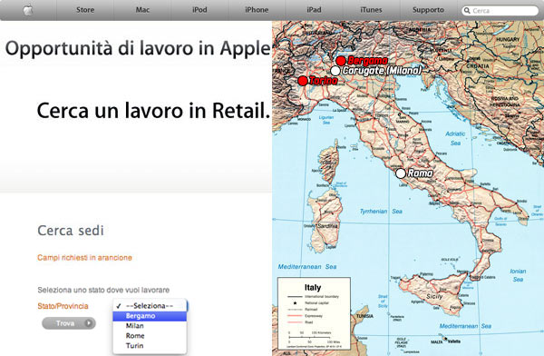 La pagina delle opportunità di lavoro del sito di Apple ora elenca anche Bergamo. Altri dettagli non sono ufficializzati.