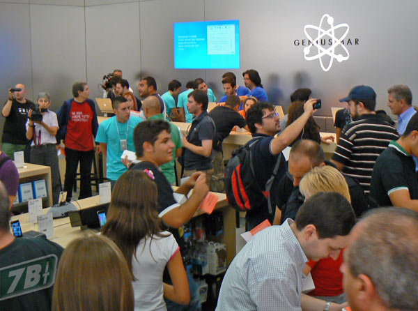 Gli altri vedevano piovere dal cielo sopra al confine tra Milano e Brianza la manna di una foto del primo visitatore in fila oppure si facevano raccontare cosa succedeva in loco, stando comodamente davanti al loro computer. Alla sera di venerdì scorso setteB.IT era al centro commerciale Carosello, immediatamente dopo la rimozione degli scuri sulla vetrina, eravamo i primi a mostrare tutte le foto del negozio che Apple avrebbe voluto svelare solo sabato.