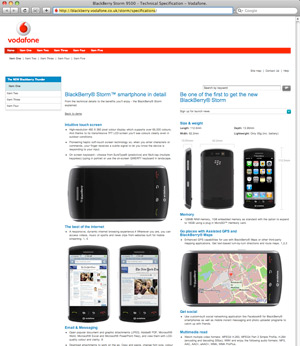 Engadget ha scoperto un paio d'ore fa quanto il grafico di Vodafone ha voluto essere creativo per presentare sul sito britannico della società di telecomunicazioni il nuovo BlackBerry (definito nel menu "Blackberry Thunder", insomma sempre un pessimo agente atmosferico). Forse troppo.