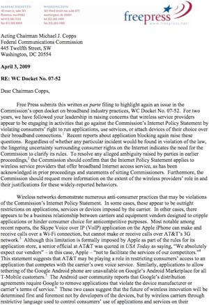 "Le comunicazioni wireless non possono diventare zona franca dove vigono le discriminazioni" scrivono gli avvocati Ben Scott e Chris Riley di Free Press a Michael Copps, presidente di FCC.