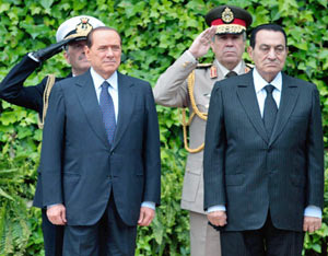 La tensione è così alta che il regime dell’80enne Hosni Mubarak (in carica dal 1981, secondo Parade nel 2009 il 20esimo peggior dittatore al mondo, a destra nella foto) ha deciso di chiudere il rubinetto di tutte le comunicazioni nel paese, così da almeno venerdì tutti o quasi gli operatori telefonici e di Internet hanno chinato il capo ed obbedito.