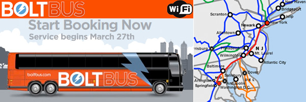 Il biglietto costa da 15 a 20 dollari per tratta ma si trovano anche offerte speciali da solo un dollaro. Prossimamente BoltBus servirà anche le tratte New York City – Boston e New York City – Philadelphia.