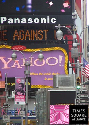 A Times Square, dove Yahoo! mostra da anni sul versante sud un’insegna viola lampeggiante, ha installato le antenne dell’hotspot ed attiverà la rete per passanti e turisti.