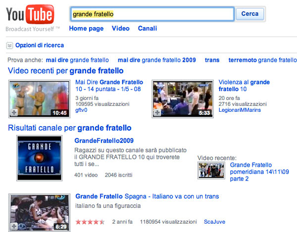 A quanto pare, però, i filmati estratti da “Grande Fratello” e da altri programmi Mediaset sono ben presenti su YouTube.