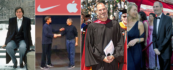 Il CEO di Apple si è presentato in altri “travestimenti” per occasioni molto particolari, certamente per lui obbligati rispetto al classico del suo armadio da diversi anni. Si notino le Nike indossate per la presentazione congiunta di Nike+iPod, una scarpa diversa da quello con lo Swoosh sul fianco sarebbe stata imbarazzante.
