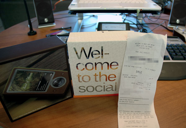Alle 15,11 di sabato 11 novembre (lo stesso giorno, sei anni fa, gli iPod arrivavano per la prima volta nei negozi, ndr) ha comperato forse il primo Zune venduto in USA, si tratta del modello 1091 con numero di serie 175143764xxx che, sul retro saluta con un poco originale e poco preciso "Hello from Seattle" (Microsoft ha sede a Redmond).