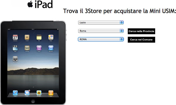 3 elenca i 3Store che hanno la micro SIM per iPad