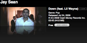 Dopo l'escursus nel settore musicale eccoci ad elencare le novità video della versione statunitense di iTunes, partendo come di consueto dagli omaggi di questa settimana. Il videoclip gratis è "Down" di Jay Sean (feat. Lil Wayne).