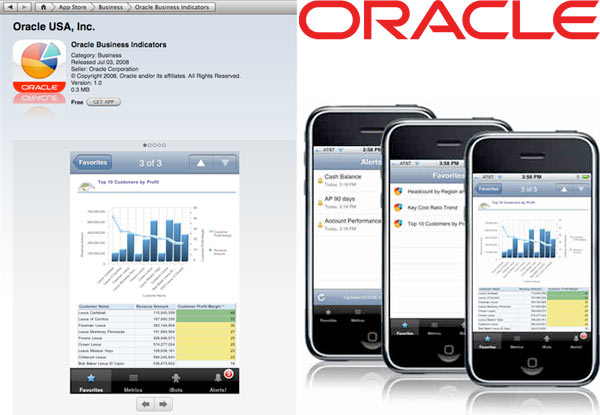 Un solo esempio valga per tutte, Oracle, la seconda software house dietro a Microsoft, ha lanciato oggi Business Indicators per iPhone 3G. Un’applicazione gratuita e dedicata alla produttività aziendale, una di quelle tante soluzioni che renderanno molto appetibile l’iPhone al mercato business.