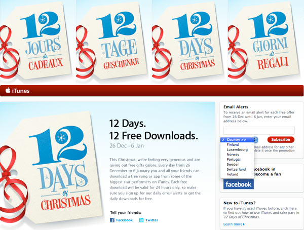 Con il debutto, cinque settimane fa, della canzone in omaggio da iTunes Store Italia, anche nel nostro paese arriverà quest’anno la promozione “12 giorni di regali“.