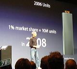 Le ambizioni di Apple sono di raggiungere l'1% del ricchissimo mercato mondiale dei telefoni cellulari. Ne sono stati venduti 957 milioni di esemplari nell'anno appena conclusosi. Se Apple ne venderà 10 milioni nel suo primo anno e mezzo di vita, avrà fatto centro. |
