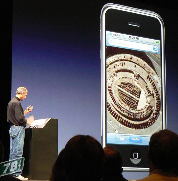 Con le visioni satellitari di Google Maps si può anche vedere il Colosseo di Roma sullo schermo dell'iPhone.