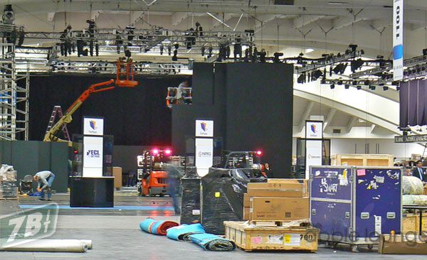 ...i lavori sono ancora decisamente in corso, tutti gli operai e tecnici stanno montando le strutture degli espositori...