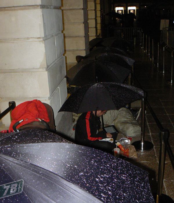 ...scattano in men che non si dica gli ombrelli neri di Apple (ma qui senza logo)...