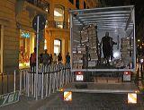 ...la security sta scaricando da un camion tutte le transenne per convogliare la gente in fila... |