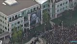 ...ma l'unica ufficiale rilasciata da Apple e distribuita dall'agenzia AP - Associated Press è questa, con il nuovo CEO Tim Cook che arringa la folla. |