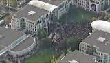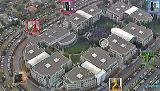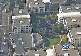 Gli elicotteri delle televisioni locali hanno sorvolato il campus di Infinite Loop (in questo caso © NBC) e noi vi mostriamo la numerazione delle 6 palazzine con cerchiato anche l'ex ufficio di Steve Jobs... |