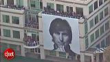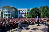 ...anche dal lato opposto, questo è il building 5, si assiste ai 90 minuti di celebrazione organizzata da Apple (© NBC)... |